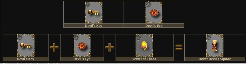 Para criação do convite será necessário o Devil's Eye + Devil's Key (ambos dos mesmos níveis) + Jewel of Chaos. (todos os itens são dropados dos monstros)